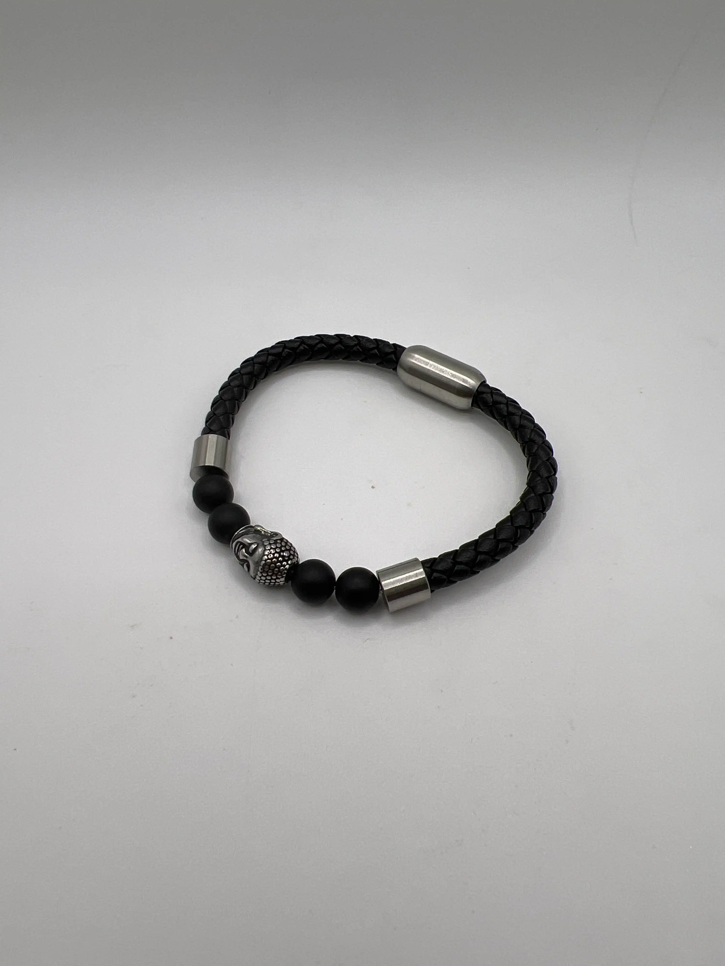 Di alta Qualità di Nuovo Disegno di Pietra Naturale In Acciaio Inox Buddha di Fascino del Cuoio Genuino Degli Uomini Del Braccialetto