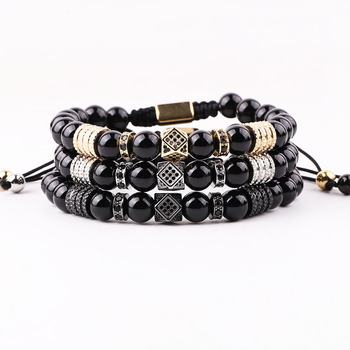 New Design Black Onyx CZ Pave Beads Stainless Steel Spacers Adjustable Men Bracelet JBS12760