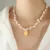Pingente de gargantilha irregular, colar elegante com design exclusivo de 18k, banhado a ouro em aço inoxidável, pérolas para água doce p1368