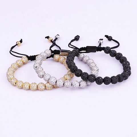 Yeni tasarım buzlu Out bilezik erkekler lüks bileklik Hip Hop CZ kristal açacağı topu kadınlar takı boncuk özel Logo makrome ayarlanabilir B