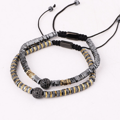 Sevimli tasarım çok renkli altın hematit boncuk CZ açacağı disk topu makrome dostluk bilezik erkekler